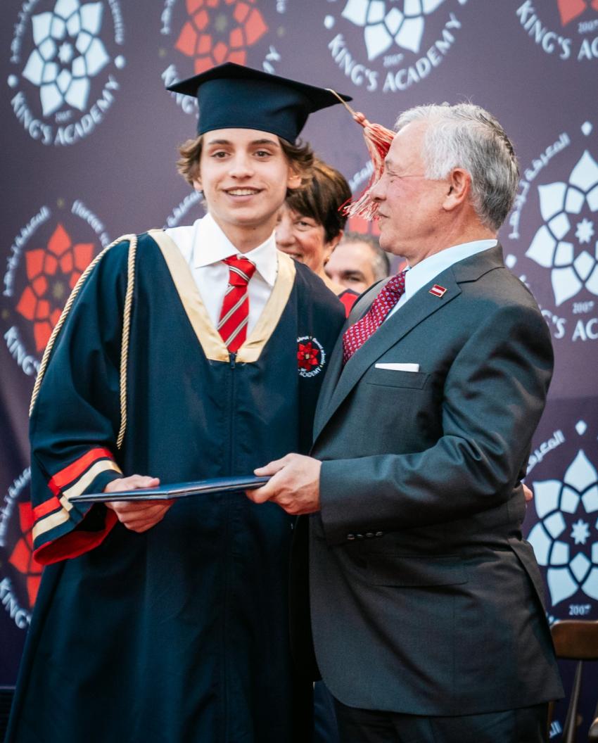 شارك العاهل الأردني الملك عبدالله الثاني، وعقيلته الملكة رانيا العبدالله، وولي العهد الأمير الحسين بن عبدالله الثاني، في حفل تخريج الأمير هاشم بن عبدالله الثاني من مدرسة كينغز أكاديمي بمادبا، بعد إنهائه مرحلة الثانوية العامة .