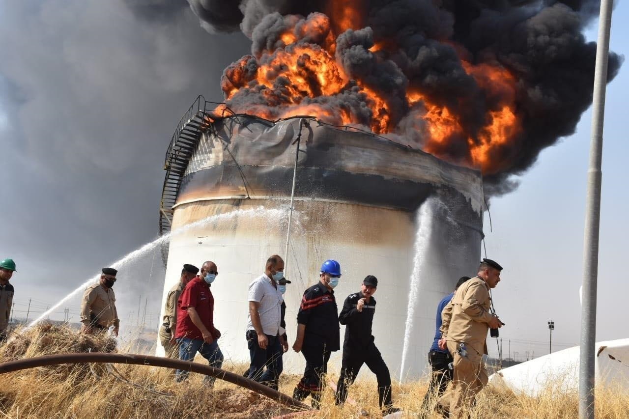 العراق.. احتراق خزان يحتوي على 5 ملايين لتر من النفط (صور)