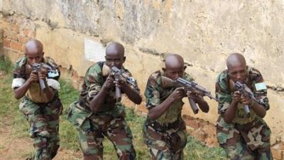 جنود صوماليون يتدربون على يد خبراء من الاتحاد الاوروبي في معسكر على بعد 368 كيلومترا غربي العاصمة الاوغندية كمبالا