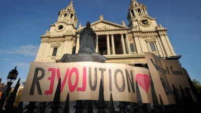 وهذا الاصرار على المضي قدما في مواصلة التحرك ترجم باقامة مخيم في لندن امام كاتدرائية القديس بولس في قلب حي "سيتي" للاعمال وابرز المراكز المالية في اوروبا، ضم نحو سبعين خيمة.