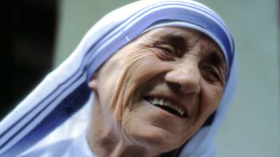 وقد حازت الام تيريزا جائزة نوبل للسلام العام 1979 وهي امرأة صلبة وعملانية اظهرت تعاطفاً غير محدود، حيال المنبوذين وكانت مدافعة عنيدة عن اخلاقيات الكنيسة، في حين شككت بإيمانها خلال جزء كبير من حياتها.