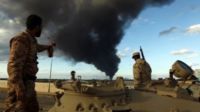 وتخشى القوى العالمية أن يؤدي الصراع الليبي إلى حرب أهلية مع اندلاع قتال حول السلطة والثروة النفطية بين جماعات للثوار السابقين الذين ساعدوا في الاطاحة بمعمر القذافي في 2011.