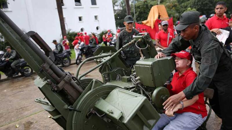 وفي كراكاس قام مؤيدون للحكومة بالتدرب على استخدام البنادق وتقنيات القتال في اطار “مسيرة ضد الامبريالية” شاركت فيها قوات الامن ومسلحون.