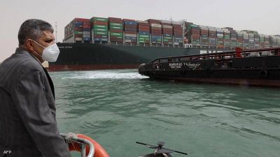 وكانت هيئة قناة السويس قالت في وقت سابق الخميس إنّ حركة الملاحة "علّقت مؤقتا" لحين إعادة تعويم السفينة العملاقة التي سدّت القناة بالكامل بعدما جنحت وعلقت بالرمال.