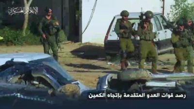 بثت كتائب الشهيد عز الدين القسام ، الجناح العسكري لحركة المقاومة الإسلامية " حماس " ، مشهدا يظهر تمكن مجاهديها من الإجهاز على قوة صهيونية راجلة ، بعد وقوعها في كمين في حي حي الزيتون .