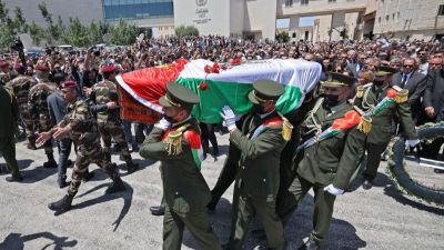 وكان جثمان الشهيدة أبو عاقلة وصل إلى القدس بعد انطلاق موكب التشييع الرسمي من مقر الرئاسة في رام الله، وفي الطريق عرقلت سلطات الاحتلال موكب الجنازة وصادرت ممتلكات من بينها شال للشهيدة؛ حسب ما أوردت "الجزيرة".