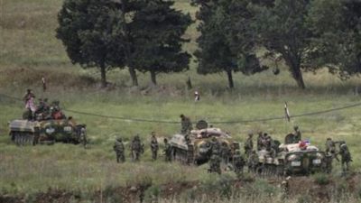 وأطلقت عربات مدرعة النار من أسلحة رشاشة ومدافع مضادة للطائرات لدى اقتحامها البلدة التي تقع على سفوح جبال لبنانية على بعد 35 كيلومترا الى الغرب من دمشق.