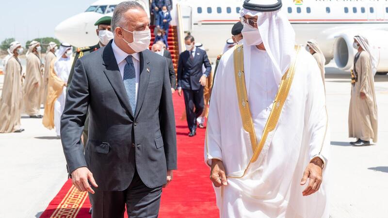 حظي الكاظمي بحفاوة رسمية بعدما استقبله ولي عهد أبوظبي في مطار الرئاسة واستعرضا معا حرس الشرف فيما أطلقت المدفعية 21 طلقة ترحيباً برئيس الحكومة العراقية في "بلده الثاني"، حسبما أفادت وكالة أنباء الإمارات.