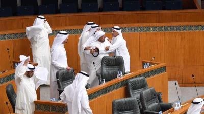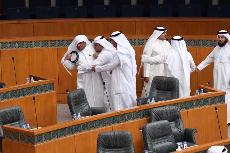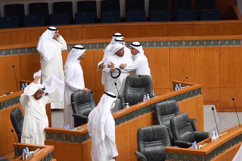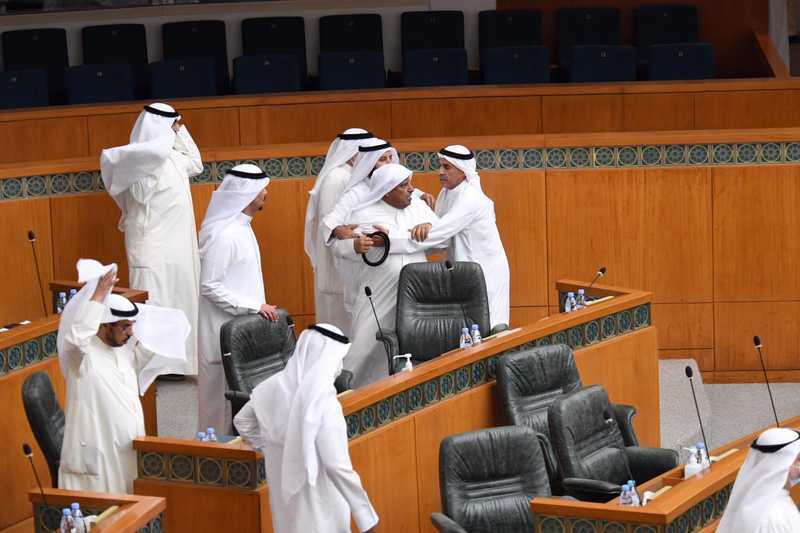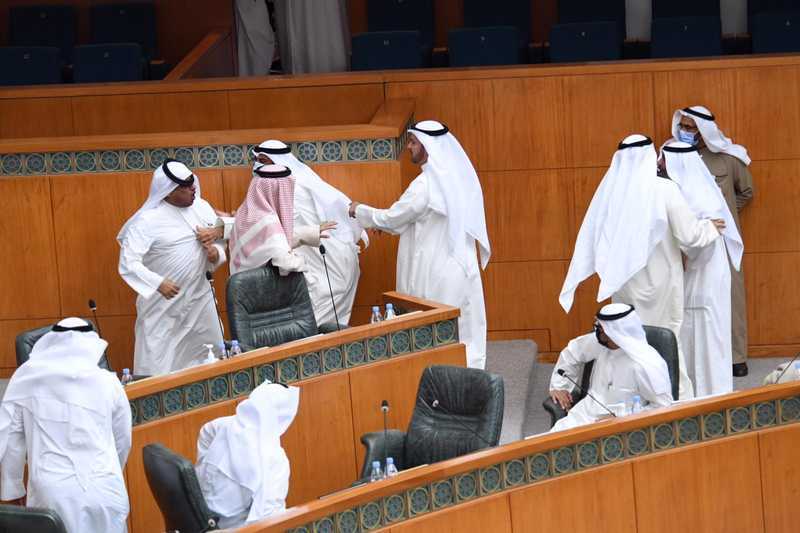ورفع رئيس مجلس الأمة مرزوق الغانم الجلسة لمدة ربع ساعة على خلفية الاشتباك بين النواب.