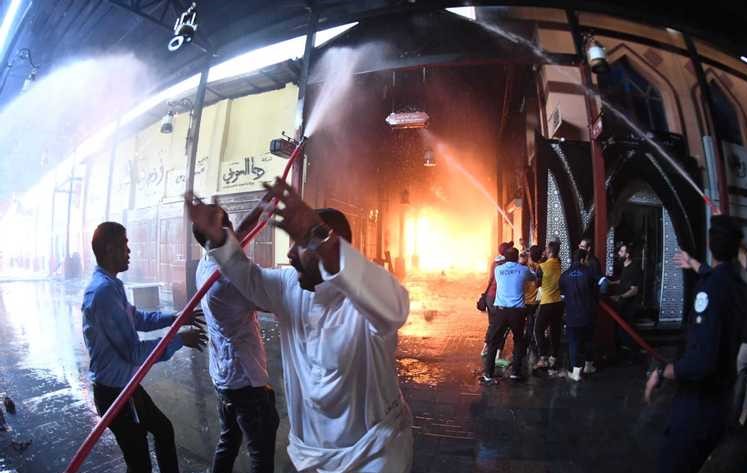 وحذر المصدر من خطورة الانهيارات المتوقع حدوثها على رجال الإطفاء وعلى المتواجدين في موقع حريق المحلات التجارية في سوق السلاح بمنطقة المباركية بسبب طبيعة الموقع.