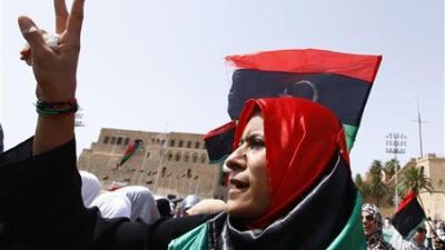 ورفع المجلس الانتقالي الوطني شعار "من اجل ليبيا موحدة وليبيا حرة". وطالبت لافتات اخرى بعدم اطلاق النار في الهواء احتفالا. لكن دفعات من اطلاق الرصاص سمعت احيانا.