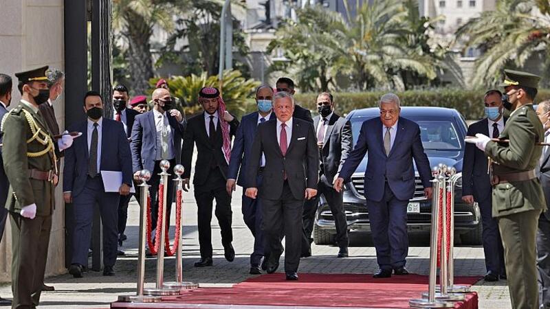 ووصل العاهل الأردني على متن طائرة مروحية حطت بالقرب من مكتب عباس في المقاطعة، إضافة إلى طائرتين مرافقتين، حسب ما شاهد مراسلو وكالة فرانس برس.