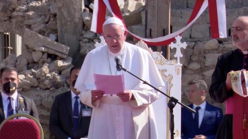 تجول البابا فرنسيس، اليوم الأحد، في مدينة الموصل شمال العراق، بسيارة صغيرة عابرا فيها الأحياء وسط الركام، الذي خلفته الحرب ضد تنظيم داعش.