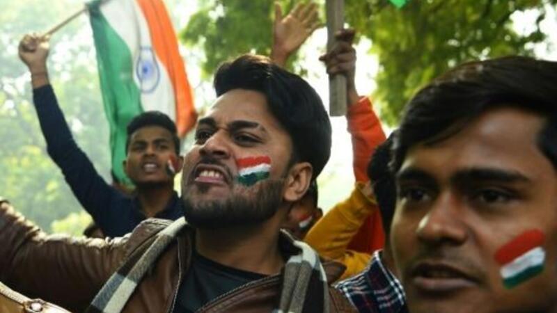 متظاهرون هنود يهتفون بشعارات مناهضة لباكستان خلال مسيرة في نيودلهي