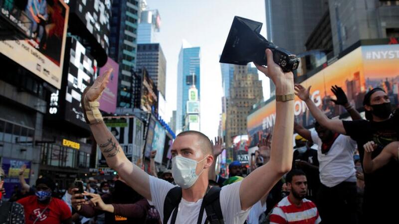 وقال شاب أمريكي من أصل أفريقي لم يرغب في الكشف عن هويته إن “السبب الوحيد لوجودنا هنا هو أن الشرطة تواصل قتل السود في جميع أنحاء البلاد”.