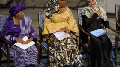 وهي المرة الاولى في تاريخ نوبل التي تمنح فيها جائزة نوبل للسلام الى ثلاث نساء.