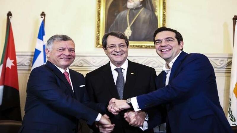 ووقع الرئيس القبرصي نيكوس أناستاسيادس ورئيس الوزراء اليوناني ألكسيس تسيبراس والملك الأردني عبد الله الثاني بيانا مشتركا يطالب بذلك خلال قمتهم الثلاثية والأولى من نوعها.