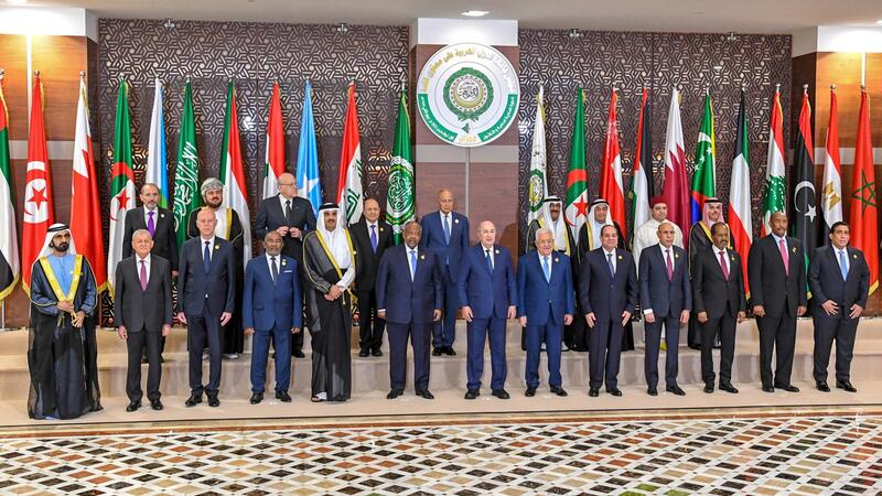 سلم الرئيس التونسي قيس سعيد رئاسة القمة العربية للرئيس عبدالمجيد تبون بعد كلمة دعا فيها الى تطبيق شعار القمة "لم الشمل" واحياء التضامن العربي
