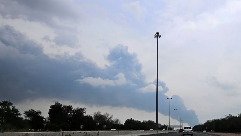 تصاعد أعمدة الدخان بالقرب من مطار الكويت الدولي -(CNN)