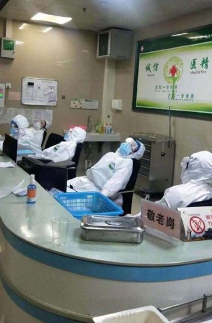وعكف الأطباء الصينيون على العمل ليلا ونهارا بدون توقف، في سباق مع الزمن لمكافحة الفيروس التاجي، الأمر الذي تسبب بدخول بعضهم في حالات هستيرية نتيجة التعب والإرهاق.