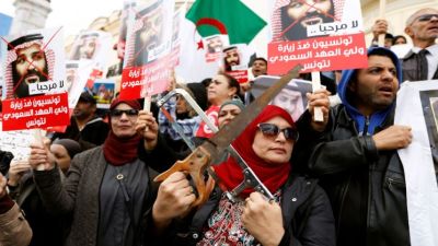 نظم مئات التونسيين، مسيرة احتجاجية وسط العاصمة تونس، رفضا لزيارة مرتقبة يجريها ولي العهد السعودي محمد بن سلمان، مساء الثلاثاء إلى البلاد، على خلفية اتهامات له بالوقوف وراء مقتل الصحافي جمال خاشقجي.