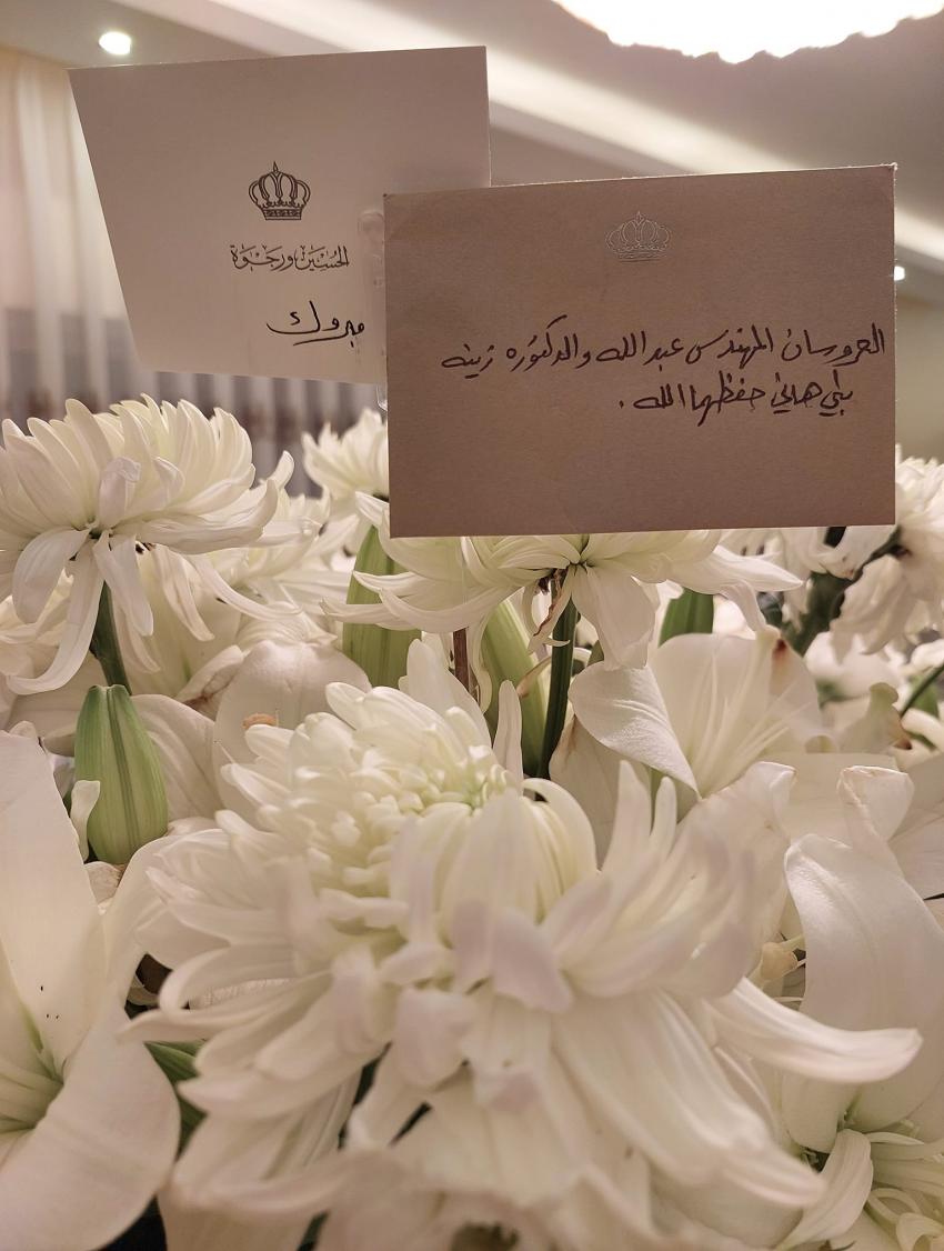 في لفتة إنسانية ومليئة بالحب والتواصل، فاجأ ولي العهد الأردني الأمير الحسين بن عبد الله الثاني، والأميرة رجوة، عروسين بإرسال باقة من الورد لهما في يوم زفافهما.