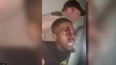 وفي الاثناء، وصل ضابط ثالث وحاول مع زميليه الاخرين احتجاز الشاب في غرفة، وعندما خرج الشاب من الغرفة كان وجهه ملطخاً بالدماء.