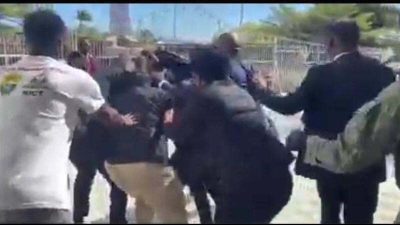 واظهر مقطع فيديو الحراس وهم يقومون باخلاء هنري على الفور إلى مكان آمن.