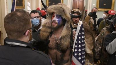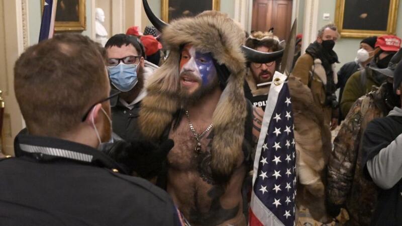 وأحد هذين الرجلين كان يتجول بملابس الشخصية الشهيرة "باتمان"، بينما كان الآخر يضع على رأسه قرنين، ويقود مجموعات الاقتحام للكونجرس.