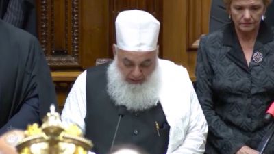 وظهر الإمام نظام الحق ثانوي، وهو يتلو آيات من سورة البقرة، داخل قاعة البرلمان النيوزيلندي، قبل أن تلقي رئيسة الوزراء كلمة مؤثرة حول الحادث الذي هز العالم ببشاعته.