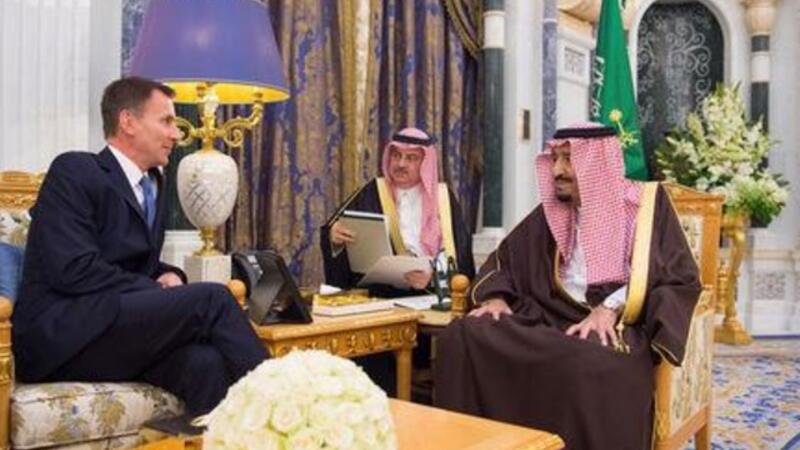 العاهل السعودي الملك سلمان بن عبد العزيز يجتمع مع وزير الخارجية البريطاني جيريمي هانت في الرياض
