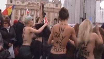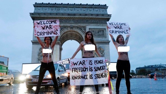 حاولت ناشطة من حركة Femen، اعتراض موكب الرئيس الأمريكي دونالد ترامب بصدر عار، وهو في طريقه إلى قوس النصر لحضور مراسم مئوية انتهاء الحرب العالمية الأولى في باريس.