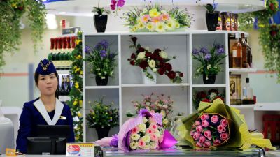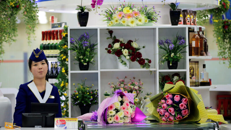 محل لبيع الزهور في مطار بيونغ يانغ