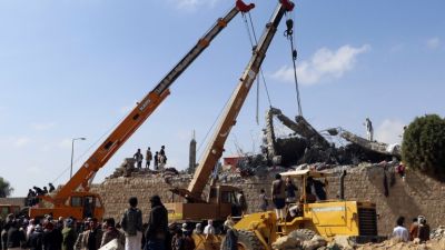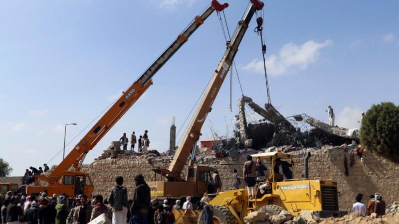 انتشلت السلطات المدنية في مدينة صعدة اليمنية، اليوم السبت، 5 جثث جديدة من تحت أنقاض مركز احتجاز في المدينة، ليرتفع عدد الضحايا بحسب قناة "المسيرة" التابعة لجماعة "أنصار الله" الحوثية، إلى 87 قتيلا.