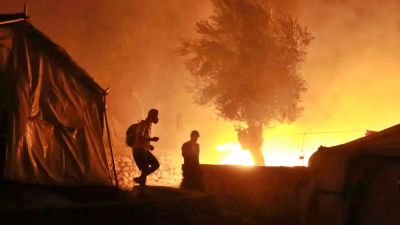 فر آلاف المهاجرين، اليوم الأربعاء، من حريق اندلع بعد منتصف الليلة الماضية في مخيم بجزيرة ليسبوس اليونانية، مكتظ باللاجئين ويخضع لإجراءات العزل العام للحد من انتشار فيروس كورونا.