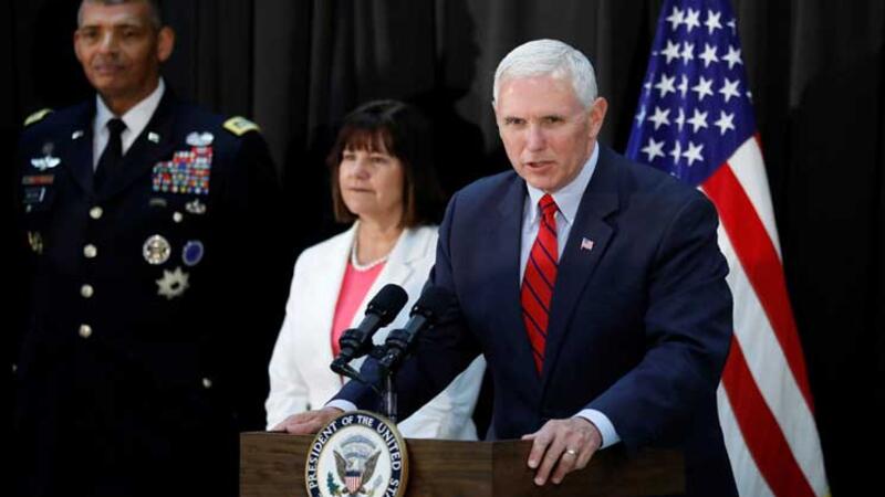 ونقل بنس اثناء عشاء مع الجنود الأمريكيين بمناسبة عيد الفصح تحية من الرئيس الامريكي دونالد ترامب الذي اطلع، بحسب وزير الدفاع جيم ماتيس على التجربة الاخيرة من دون ان يدلي بتعليق اضافي.