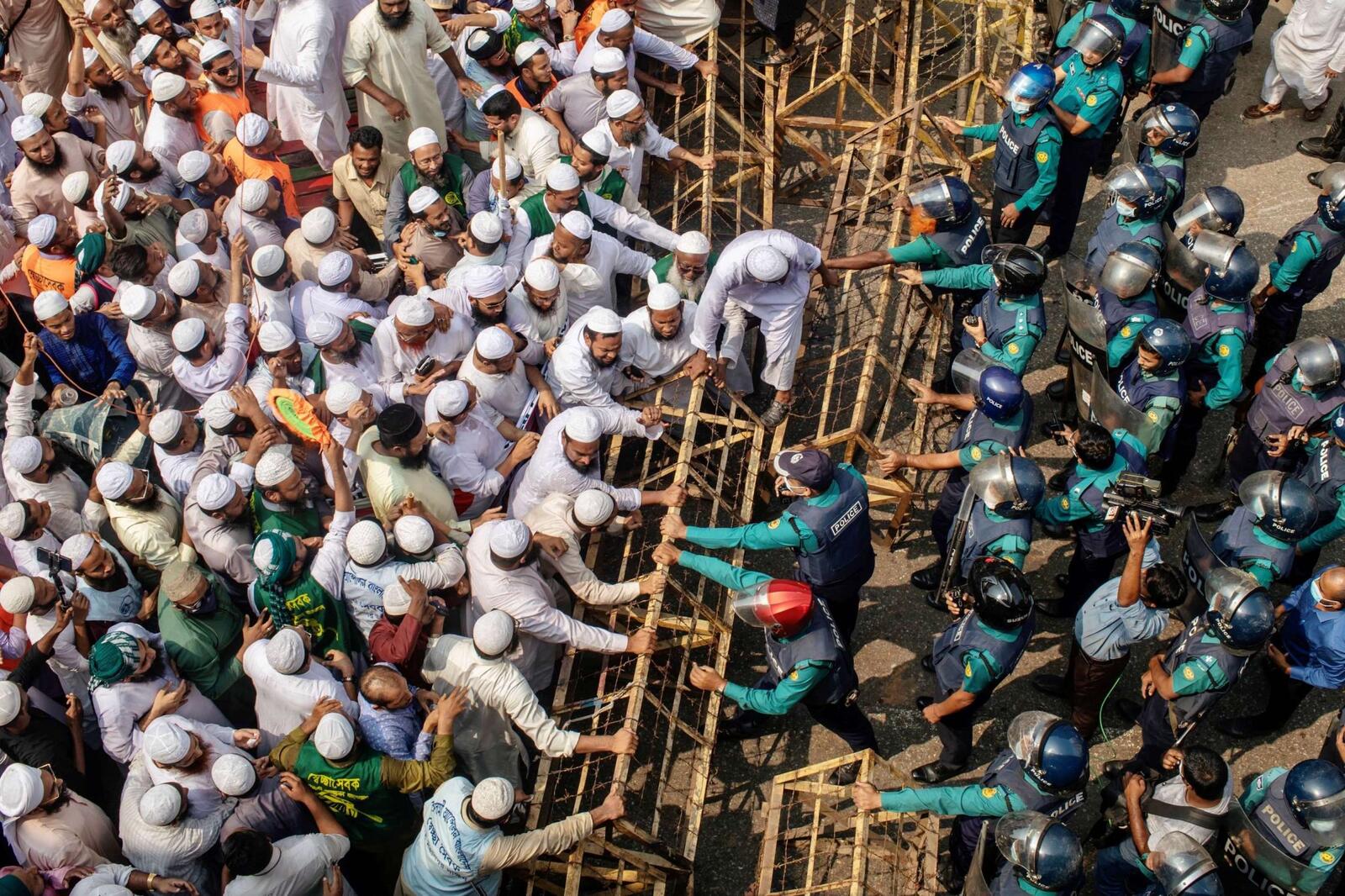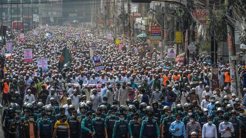 قالت الشرطة في بنغلاديش إن الآلاف من نشطاء الأحزاب الإسلامية يتظاهرون في العاصمة دكا ضد دفاع الرئيس الفرنسي إيمانويل ماكرون عن الرسوم الكاريكاتورية المسيئة للنبي محمد.