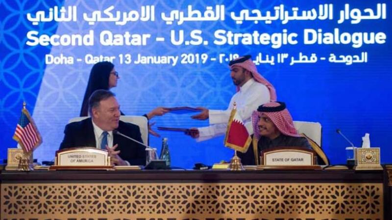 وشهد بومبيو ونظيره القطري الشيخ محمد بن عبد الرحمن آل ثاني توقيع سلسلة اتفاقيات في المجالات الاقتصادية والسياسية والأمنية بين البلدين خلال افتتاح الحوار الاستراتيجي القطري الأمريكي بالدوحة.