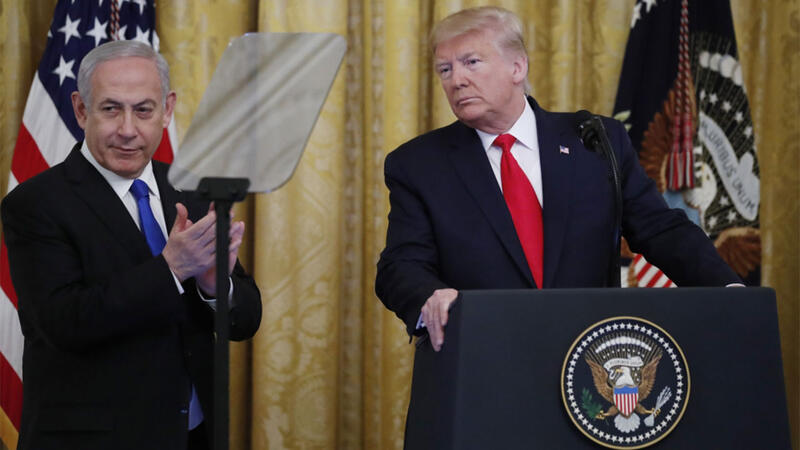 وذكر العالم بخطواته اتجاه اسرائيل منها نقل السفارة الاميركية الى القدس والاعتراف بسيادة اسرائيل على الجولان والانسحاب من الملف النووي الايراني