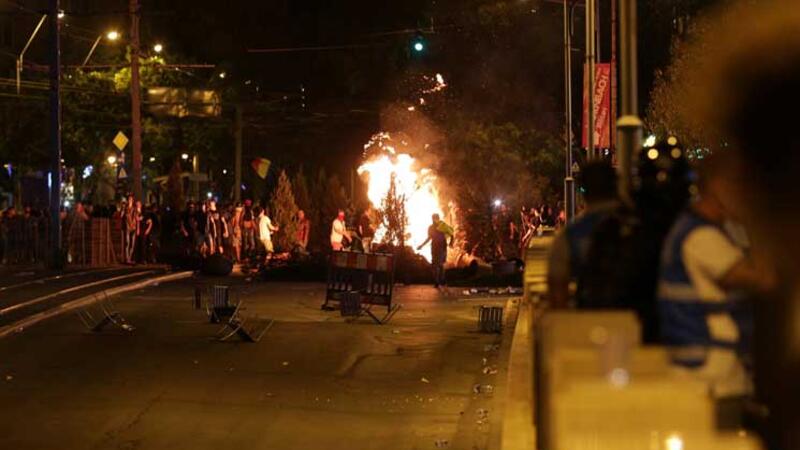 وفي بوخارست حاول بعض المحتجين اختراق صفوف قوات الأمن التي تحرس مقر الحكومة. وقام آخرون برشق شرطة مكافحة الشغب بالزجاجات والحجارة. ومع استمرار الاحتجاج حتى الليل قامت الشرطة باستخدام مدفع للمياه وأطلقت الغاز المسيل للدموع لتفريق الحشد.