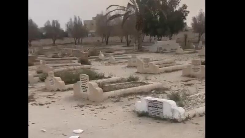 واظهر مقطع مصور متداول القبور التي تعرضت للتخريب، لكن يتعذر قراءة الاسماء المكتوبة على شواهدها.