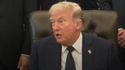 وعن سؤاله عن النفط، أشار ترامب إلى أن برميل النفط قد يصل إلى 200 دولار.
