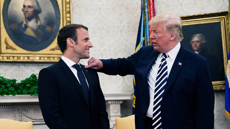 عرض اليوم السبت الرئيس الفرنسي إيمانويل ماكرون على نظيره الأمريكي دونالد ترامب خطة تهدف لإنهاء الجمود حول الاتفاق النووي الإيراني وسعى ماكرون إلى إقناع ترامب بالخطة.