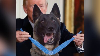 ترامب ينشر صورة مركّبة تظهره يقلد ميدالية لكلب شارك بعملية البغدادي