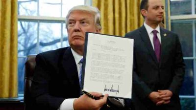 ووصف ترامب قرار الانسحاب من اتفاق الشراكة عبر الهادي بأنه "شيء عظيم للعامل الأمريكي".
