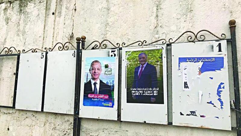 وبينما خصصت السلطة المستقلة للانتخابات خمسة حوامل خشبية كبيرة في الشوارع الكبرى والميادين ليضع عليها المرشحون الخمسة للانتخابات صورهم وملصقاتهم، ظلت أغلبها خالية من أي ملصقات، باستثناء المرشح عبد القادر بن قرينة رئيس حزب حركة البناء الوطني (المنشق عن الإخوان) الذي يعد أكثر المرشحين الخمسة وضعا لملصقاته الانتخابية، إلا أن أغلبها يقوم المارة بتمزيقها أو كتابة عبارات رافضة له عليها، وأحيانا وضع طلاء أحمر عليها، في إشارة لدماء الجزائريين التي تسبب الإسلاميون في إراقتها خلال العشرية السوداء في التسعينيات من القرن الماضي.
