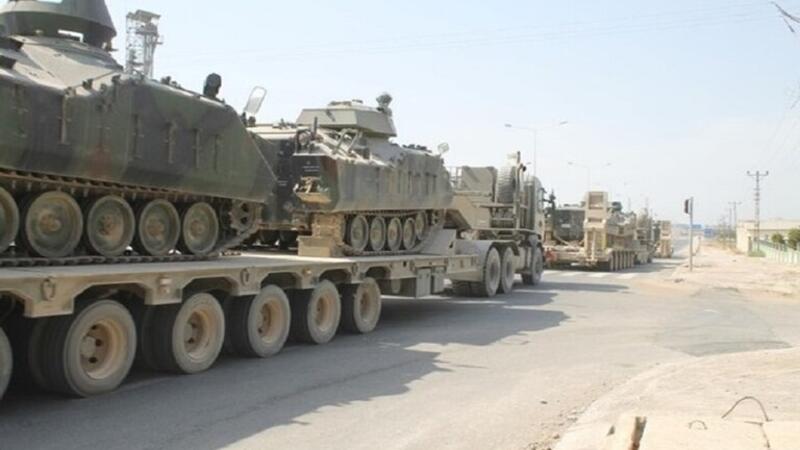 ونقلت وكالة IHA التركية عن مصادر عسكرية قولها، إن قافلتين تحملان معدات ونحو 40 دبابة غادرت منطقة الريحانية بمحافظة هاتاي على الحدود مع سوريا. وأنه من المتوقع أن يتم إرسال هذه الدبابات إلى أدرنة بالقطار.