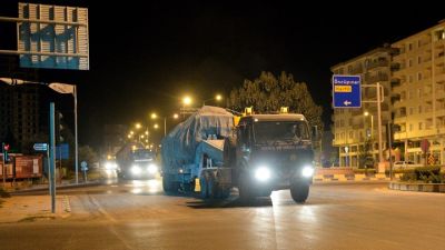 ونقلت الوكالة عن مصادر أمنية تركية، أن رتلا مؤلفا من 8 شاحنات تحمل دبابات وحافلات، وصل إلى كليس، وسط إجراءات أمنية مشددة.