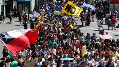 لكن هذه الوعود السخية لم تتحقق أبداً، بينما في الواقع هوى متوسط المعاش للعمال الآن إلى ما دون الحد الأدنى للأجور في تشيلي البالغ 257500 بيزو (حوالي 385 دولاراً أمريكياً) شهرياً.