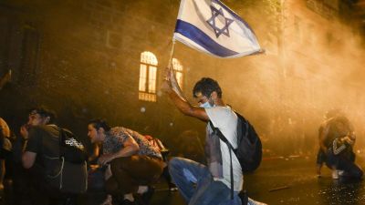 وبينما يشارك الآلاف في تظاهرات القدس ضد نتانياهو، يخرج بضع مئات من الإسرائيليين للتظاهر في تل أبيب.
